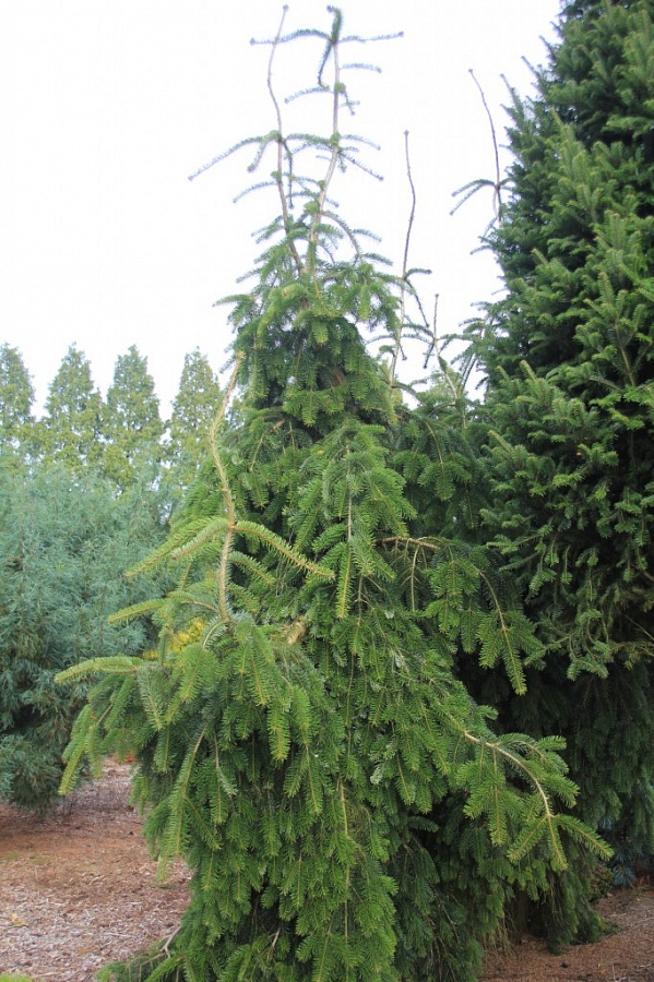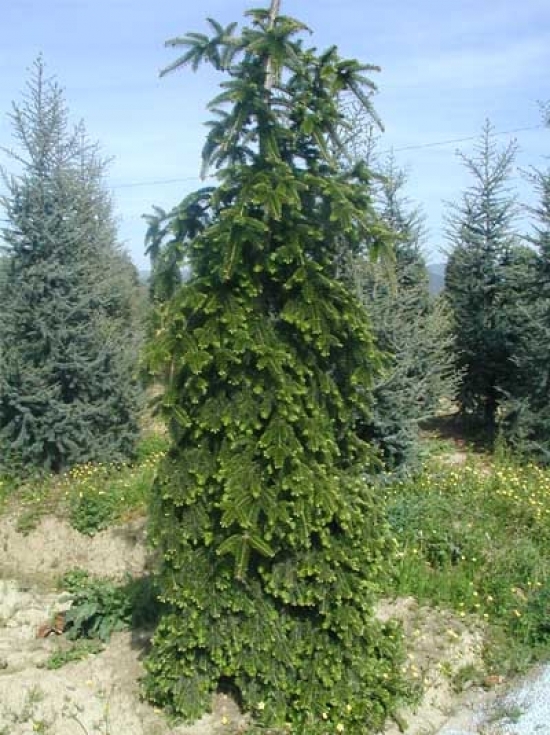 Саженцы Пихты нордмана Пендула (Pendula) – дерево пришедшее к нам из французского региона Нормандия. Зимой и летом её хвоя остаётся зелёной. Отличие этого вида в том, что он растёт быстрее, чем остальные представительницы пихт, особенно после 10 лет. Ствол может быть диаметром 2 метра, а высота 50 метров. Пушистая крона в форме конуса эффектно выглядит, диаметр этой красоты может составлять до 10 метров. Молодые веточки растут светло-коричневыми, а к концу года наливаются зеленью. Это придаёт кроне экзотичность, растение протягает взгляд. Шишки на пихте появляются спустя 30 лет, многие используют их в декоративных целях. Пихта толерантно относится к морозам, выдерживает до 25 градусов, а вот грязный воздух не любит.