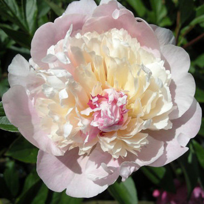 Рассада пиона молочноцветкового Мадам Калот (Madam Calot) – быстрорастущий сорт с воздушными бело-розовыми облачками цветов. Отлично смотрится в срезке. Растения очень стойкие к погодным условиям и заболеваниям, несмотря на аристократичный внешний вид. Цветение обильное и продолжительное. Стебли прочные. Темно-зеленые листья осенью приобретают красноватый оттенок. Сорт – многолетник, может расти и зацветать без пересадки до 15-20 лет. Особенности пиона Мадам Калот: