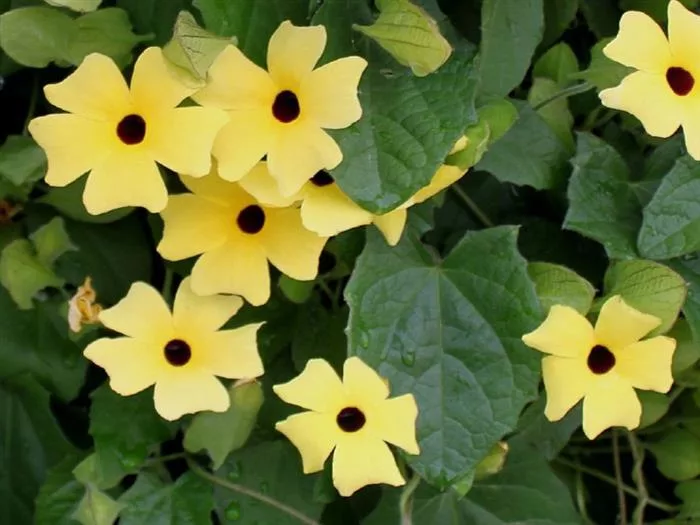 Это растение любит солнечные места, поэтому выберите для него яркое место в саду. Тунбергия Susie Yellow with Black Eye требует умеренного полива и опрыскивания, особенно в жаркие летние дни. Для обильного цветения и здорового роста можно использовать удобрения для плодородных почв.