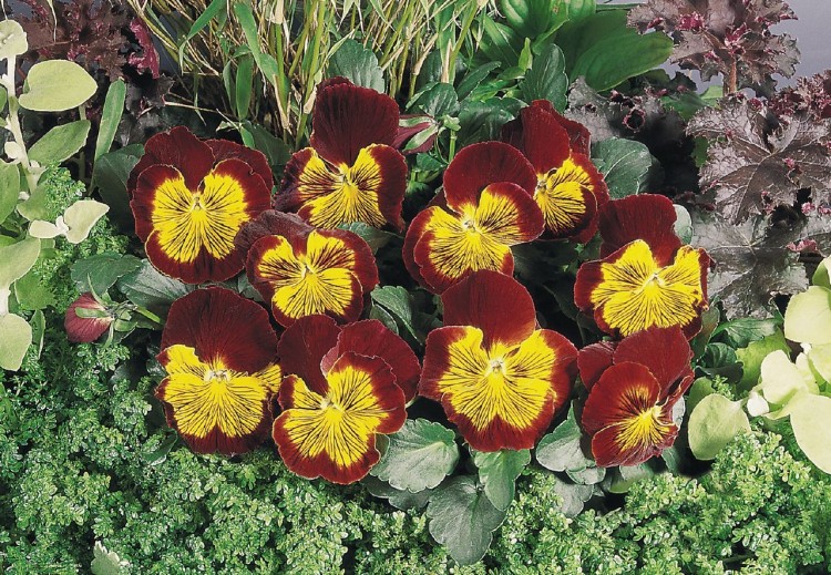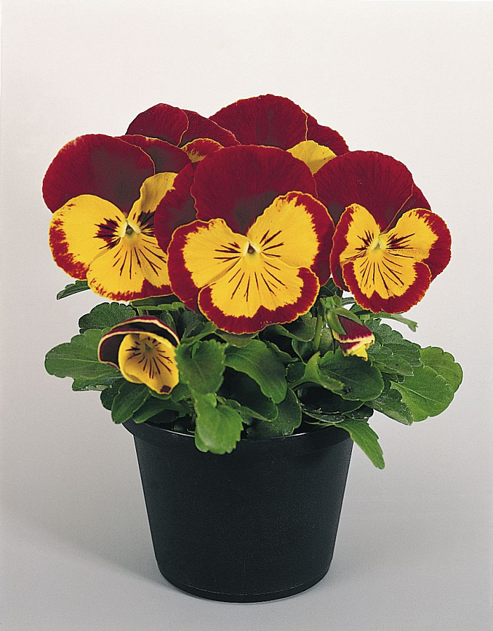 Виола крупноцветковая "Кетс Ред энд Голд" - это великолепное растение с бордово-желтыми цветками, которое поразит ваш взгляд своей красотой и изяществом. Этот сорт виолы отличается высотой 15-20 см и размером цветка 6-8 см, что делает его идеальным выбором для групповых посадок в солнечных и полутенистых местах.