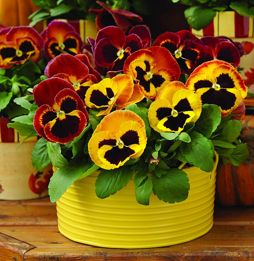 Виола крупноцветковая маммот он файр - это настоящий огненный фейерверк в вашем саду! Ее бордово-желтые цветы радуют глаз своими яркими оттенками и невероятной красотой. Это растение достигает высоты 15-20 см, идеально подходит для групповых посадок, создавая удивительные композиции.