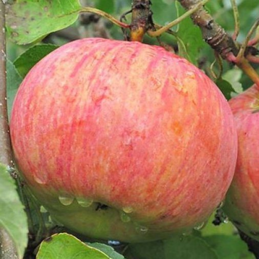Саженцы яблони Осеннее Полосатое можно высаживать не только рядом с другими деревьями, но и одиночно, так как сорт является самоопыляемым. Урожайность довольно высокая, с одного дерева в благоприятные годы можно собрать до 150 кг яблок. Характеристика плодов: