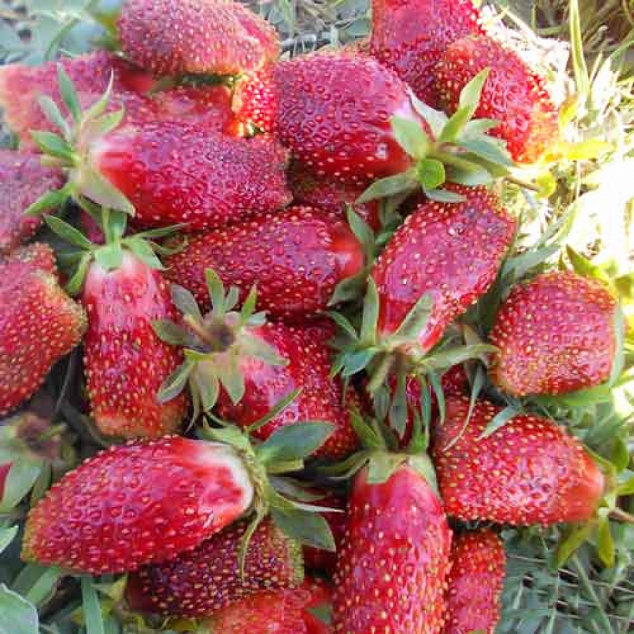 Саженцы земклуники Цукат мускатный (zemklunika Tsukat Muskatnyy) — это гибрид дикой лесной земляники и клубники. Сорт со среднеранним сроком созревания урожая. Кусты раскидистые, стебли прямостоячие. Цветоносы располагаются над листвой, благодаря этому созревшие ягоды не покрываются плесенью, поскольку не соприкасаются с почвой. Для посадки предпочтительны солнечные участки или полутень. Ягоды крупные, внешне похожи на очень крупную землянику. Максимальный вес — до 35 граммов. Мякоть темно-красного оттенка, кисло-сладкая с мускатным привкусом. Спелые ягоды очень ароматные.